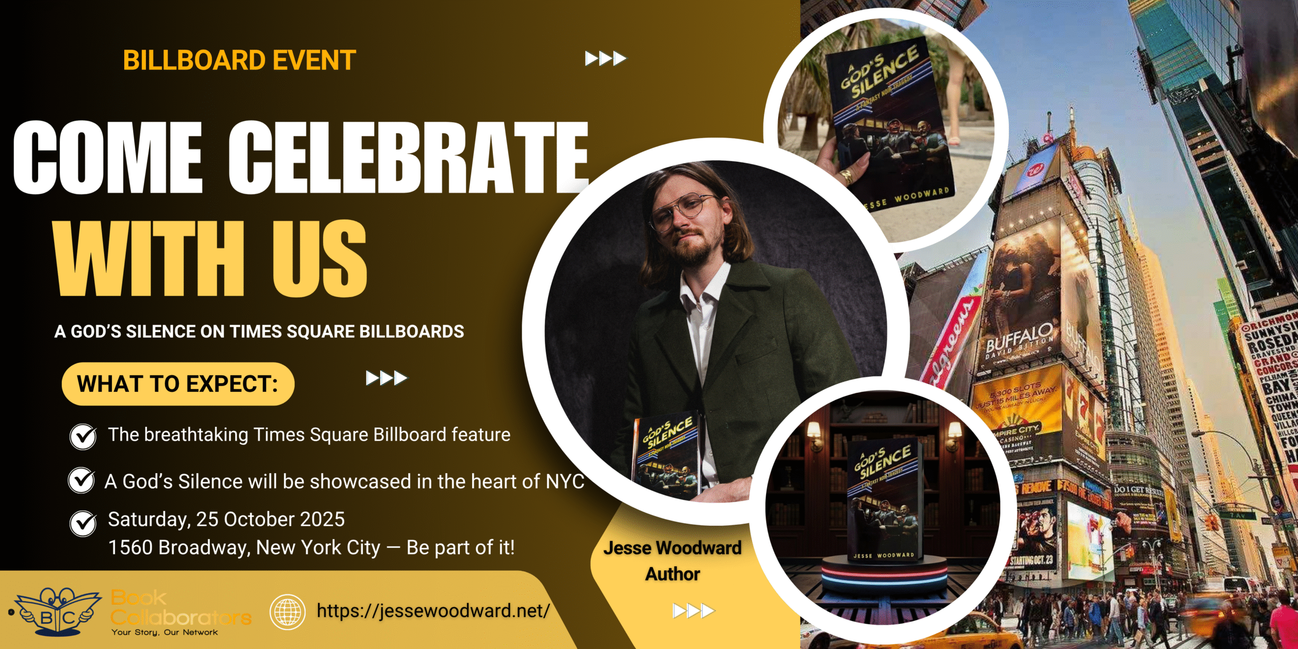 A God’s Silence, Jesse Woodward’s amazing book, will be displayed in one of the breathtaking New York Times Square’s Billboard. A God’s Silence will be showcased in the heart of New York City.